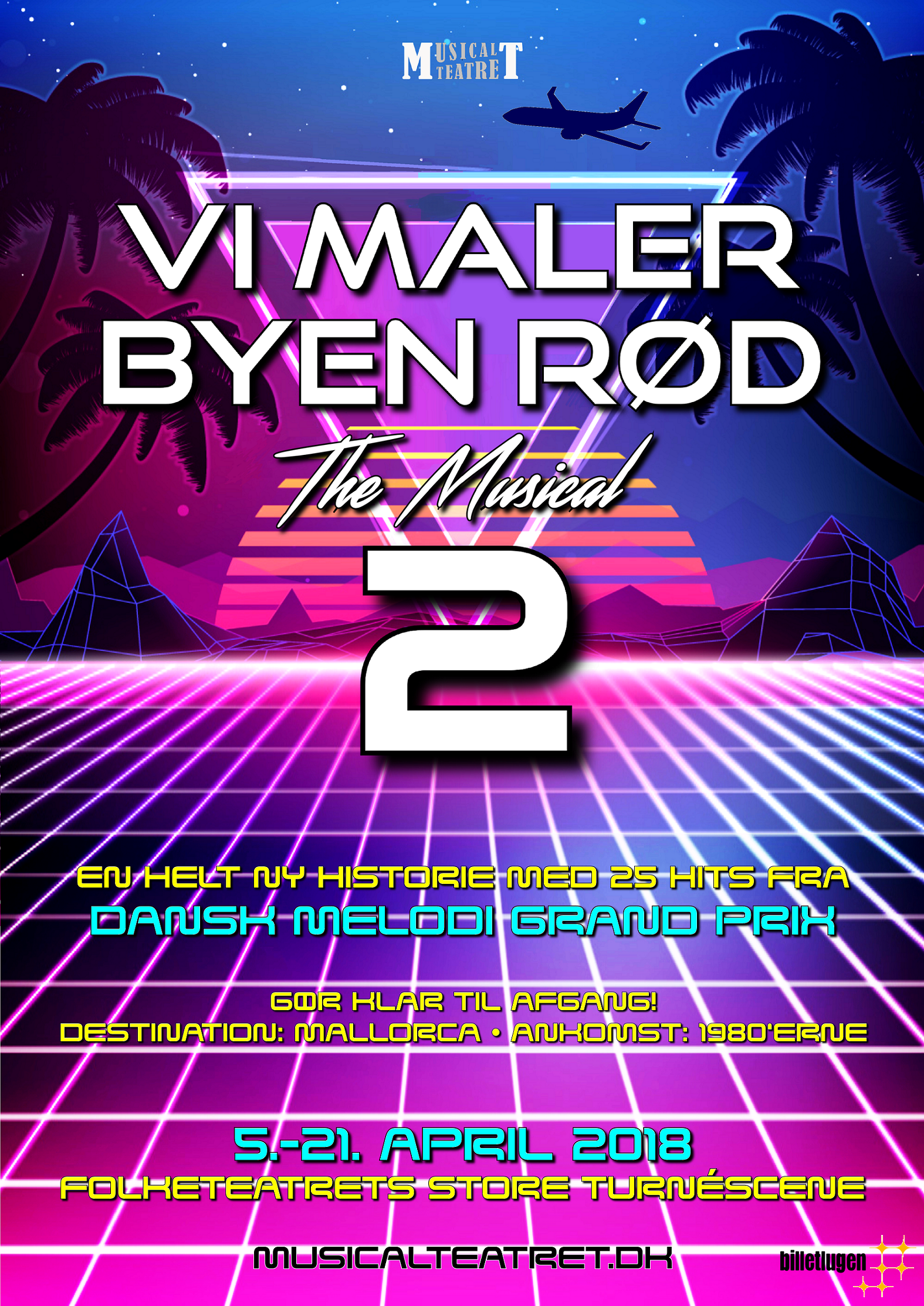 Efter at have været opført over 40 gange i hele landet siden danmarkspremieren i 2010, kommer der nu endelig en selvstændig opfølger til hitmusicalen "Vi maler byen rød: The Musical"! Tag med tilbage til 1980'erne i den nye fantastiske, farverige og hylende morsomme fortsættelse, der spiller på Folketeatrets Store Turnéscene i april 2018. Læs alt om "VI MALER BYEN RØD: THE MUSICAL 2" og hvordan du køber billetter her: musicalteatret.dk/vmbr2